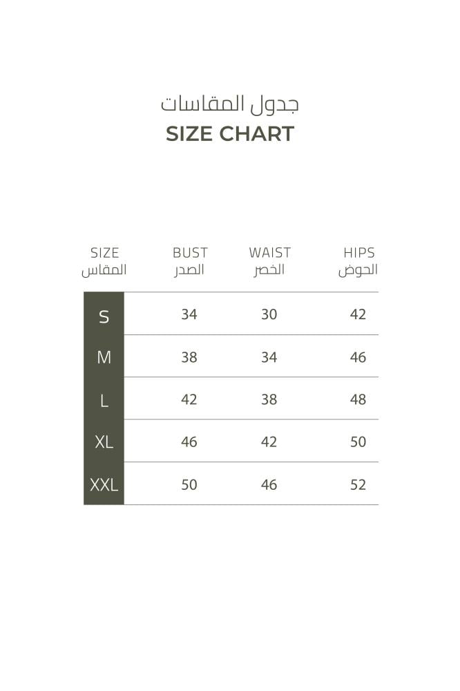 - المقاسات: متوفر بجميع المقاسات (S، M، L) حسب جدول المقاسات المرفق.